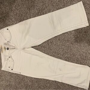 Chic white capris with unique back pocket design. Perfect for everyday style.