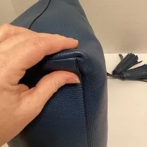Elegant blue hobo bag by Tory Burch. This is a very beautiful blue soft leather with a sleek design. You will love this bag.
