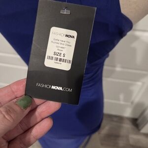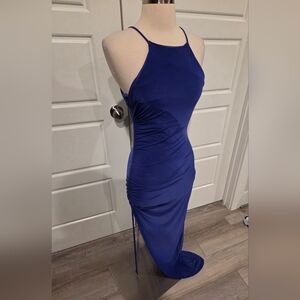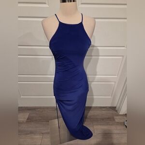 Fashion Nova Blue RUched Midi Dress