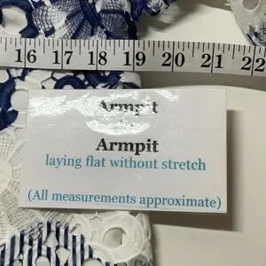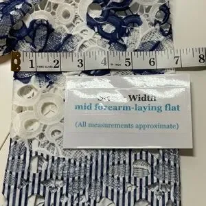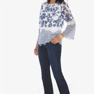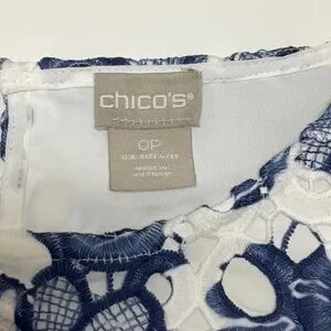 Chico’s Printed Lace Popover Top 0 Petite ( Size 4) White Navy