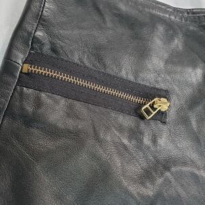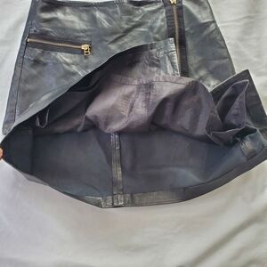 Bod & Christensen Genuine Leather Asymmetrical Zip Mini Black Skirt