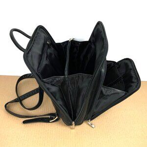 Leather Organizer Backpack Academia Business Travel Unisex. Main zippered compartment has zipper divider, interior zipper pocket, and two open pockets for PDA/cell phone. Front zippered pocket contains five card slots and two pen sleeves. Bag has adjustable shoulder straps and brush nickel buckles and a separate handle. Genuine cowhide leather. Unbranded. Excellent condition, no signs of use.