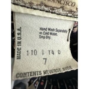 The product is a vintage Gunne Sax floral tiered prairie cottagecore skirt from the 1970s, size 7. This skirt embodies the boho and cottagecore style popular in the 1970s, with a unique floral pattern and tiered design that gives it a retro charm. Perfect for those who appreciate vintage fashion and want to add a touch of nostalgia to their wardrobe.