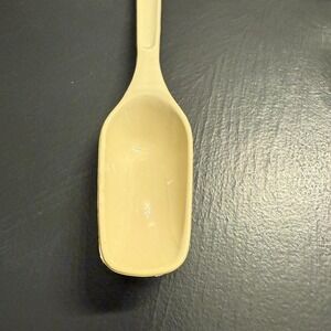 This vintage King Kraft spoon is a cooking utensil made of plastic in a beige color. It features a plastic handle and is perfect for adding a touch of retro charm to your kitchen. With its excellent condition, this spoon is sure to become a durable and stylish addition to your collection of kitchen tools and gadgets.