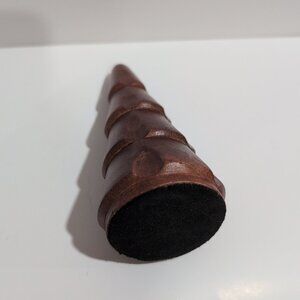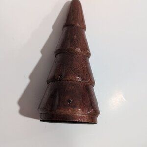 This 6" tall wooden pine tree decoration is a festive addition to your Christmas or woodland/cabin decor. The small figurine is perfect for teens and adults alike, with a brown stained finish adding a seasonal touch to any room. Made of wood and weighing only 3 oz, this decoration is lightweight and easy to display. Whether placed on a tabletop or shelf, this pine tree figurine will bring a touch of holiday cheer to your home. Small blemish. See last photo.