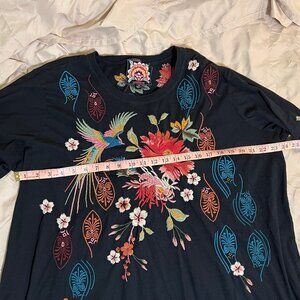 Johnny Was Colorful Floral Bird Embroidery Cotton Shirt Long Sleeve whimsigoth