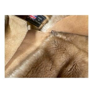 The Vintage Adolph Schuman for Lilli Ann Faux Fur Coat is a stylish and classic piece from the 1960s. Made in the United Kingdom, this brown coat features faux fur combined with 63% acrylic and 37% cotton, along with real leather. The brand's distinctive design and high-quality materials make this coat a timeless addition to any vintage collection. Perfect for women looking for a sophisticated and retro-inspired outerwear option. There is a hoop missing at top. No size tag.