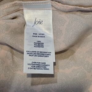 The Joie Beige Green Paisley Scallop Edge Short Sleeve Blouse is a stylish and versatile top perfect for casual occasions. Made from a comfortable blend of polyester and rayon, this blouse features a round neck, pullover closure, and a colorful paisley pattern. With a regular fit and short sleeves, it is ideal for the summer and spring seasons, offering a bohemian and colorful theme. The brand, JOIE, ensures high quality and a fashionable design that is sure to elevate any outfit. Machine washable for easy care, this blouse is a must-have for any woman's wardrobe.