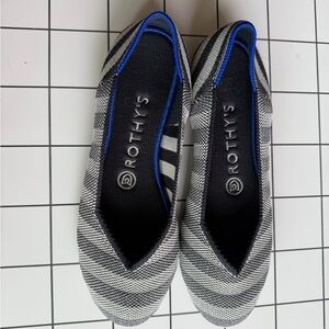 Stylish black and white striped flats. Comfortable and eco-friendly design.