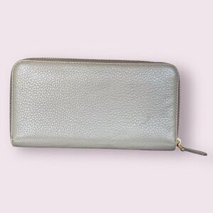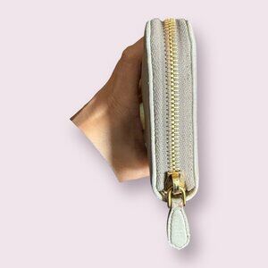 Very good pre-owned condition. The leather remains soft, supple, and well-kept with a clean, well-maintained appearance. There is a small area of light surface variation along the bottom exterior edge, visible upon close inspection (see photos). Interior is exceptionally clean with no coin residue. Zipper functions smoothly and the wallet maintains its original structure.