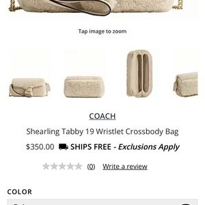 Luxurious shearling clutch by Coach. Features a plush exterior and elegant gold-tone hardware. Perfect for any occasion.