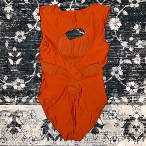 Stylish one-piece with unique back design. Ideal for beach or pool days.
