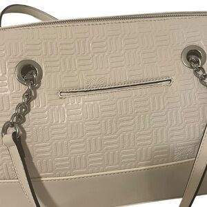 Anne Klein Cream Embossed Satchel Shoulder Bag Chain Strap — Ivory