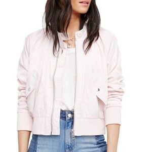 FREE PEOPLE Pink Midnight Bomber Jacket Full Zip Long Sleeve SIZE MEDIUM