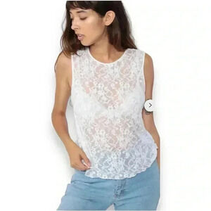 DKNY Vintage White delicate Floral Lace Sheer Crewneck Size Medium Tank/Camisole