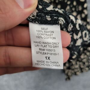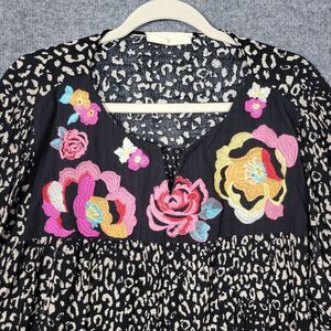 SAVANNA JANE Black Floral Embroidered Leopard Print Mixed Media Boho Top SIZE 1X