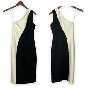 Calvin Klein Black & Cream Color Block One Shoulder Scuba Sheath Dress