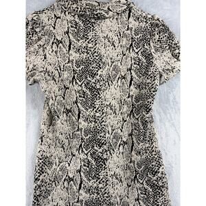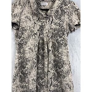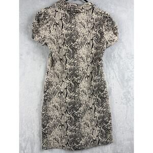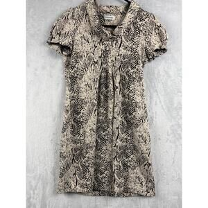 Calvin Klein Snake Print Shift Dress – Puff Sleeve Stretch – Tan/Black – Size 8P
