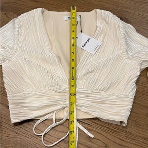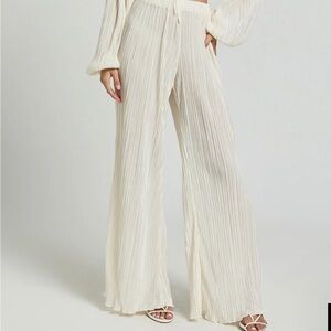 NWT Showpo Plisse Set Cream 2 Jondra Long Sleeve Blouse 4 Becca Flared Pants