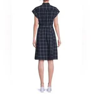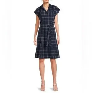 Calvin Klein Plaid Belted Dress - indigo white - size 12