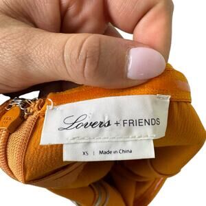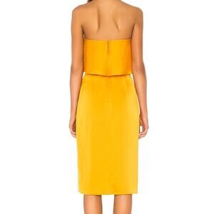 Lovers + Friends Violet Orange Satin Side Slit Formal Strapless Midi Prom Dress