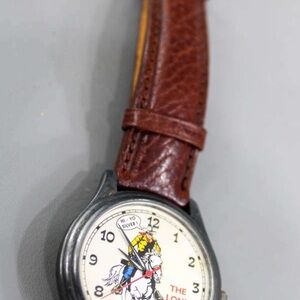 Official Fossil watch with Lone Ranger theme. Features a brown leather strap. Limited edition collectible.