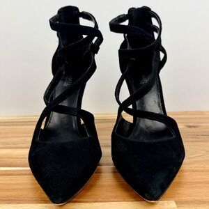 Michael Kors Black Suede Strappy Stiletto Heels Zip Ankle Strap Womens 5.5M
