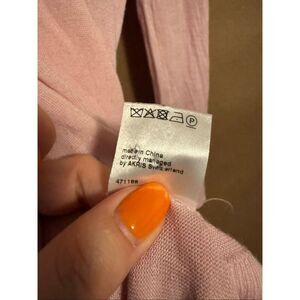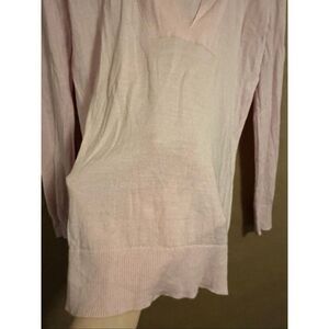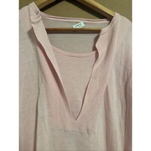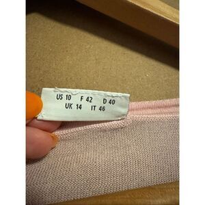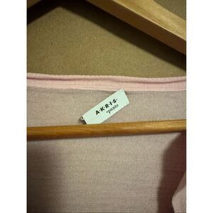 Soft pink, sheer. Elegant trompe l’oeil tailoring creates a dimensional and layered look. Knit from merino wool. Runs small.