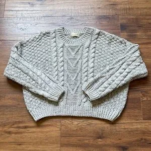 Altar’d State Women’s Gray Chunky Cable Knit Long Sleeve Sweater Size Medium