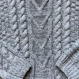 Altar’d State Women’s Gray Chunky Cable Knit Long Sleeve Sweater