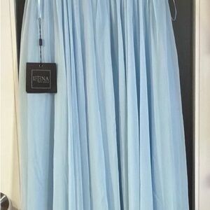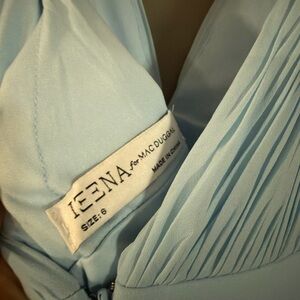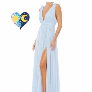 NWT: Mac Duggal 55321 Plunge V-Neck Pleated Chiffon Gown Powder Blue Size 6: has one small snag on the top right