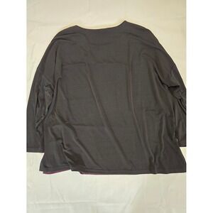 Keywords: Calvin Klein, color block top, velvet blouse, long sleeve top, pullover top, womens top, size XL, black and purple, gold accent, casual top, contemporary fashion, designer top, blouse, colorblock