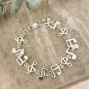 925 Sterling Silver Music Note Bracelet Charm Bracelet Music Lover Jewelry
