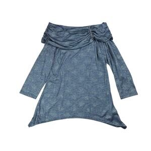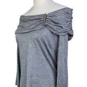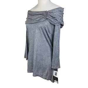 Frank Lyman NWT Dark Gray Silver Metallic Off the Shoulder Ruched Jewel Top