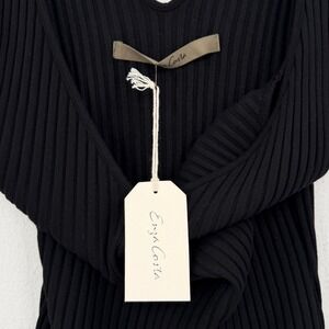 ENZA COSTA Rib Sweater Knit Midi Tank Dress Women Medium Black V Neck Luxury NEW