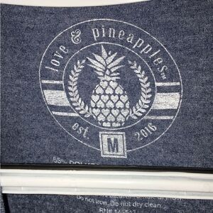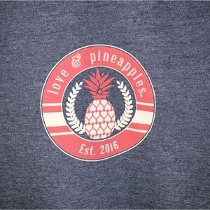 Love & Pineapples Graphic Crew Neck T-Shirt Pink Flamingo Sz M