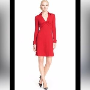 Diane Von Furstenberg | Women's DVF Cloud Twist Dress Red Wool Collared Mini | 4