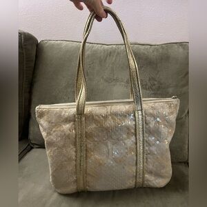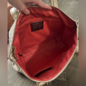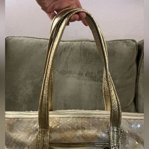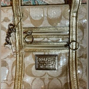 ✨COACH VTG POPPY Special Edition Signature Sequin Tote Bag Gold Cream RARE✨