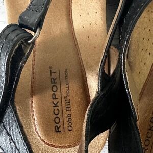 Keywords: Rockport, Cobb Hill Collection, sandals, women's sandals, leather sandals, black sandals, T strap sandals, adjustable sandals, wedge sandals, comfortable sandals, size 10, womens size 10, black leather shoes, low heel sandals