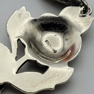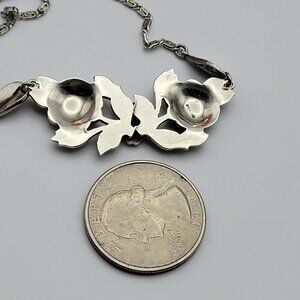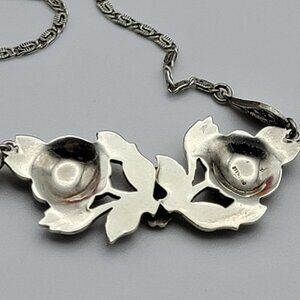 Vtg. Signed Germany Sterling Silver 925 Marcasite Floral Plaque Necklace 15 Inch