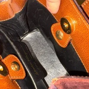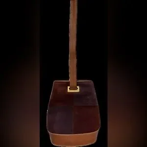 DO NOT sleep on this rare find. Soft suede outer patchwork design. Has a hard bottom which keeps shape. Small flaw on the bottom rim left side. Everything else, please take a look at pics for condition. Well loved.