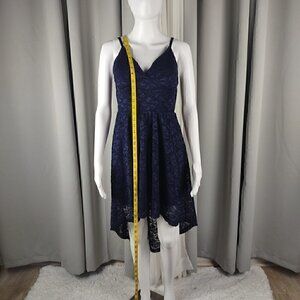Liley Rose Women's Navy Blue, Lace, High-Low, Lined, Midi Dress Size Medium
