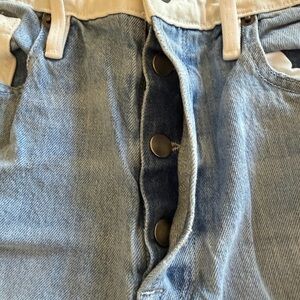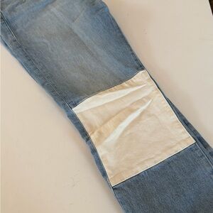 NWOT Frame Le Original Sadie denim colorblocked, cropped and straight leg jeans.