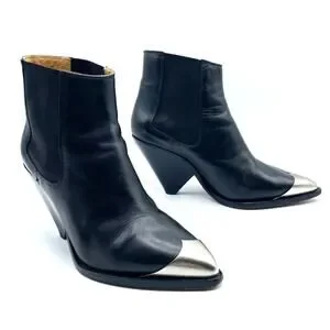 Isabel Marant Lemsey Ankle Boots in black leather with metal end caps at the toes size 36/US 6. They have normal sign of wear like leather creases but nothing major. They’re in very good preowned condition.