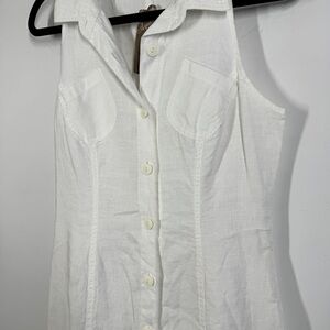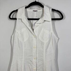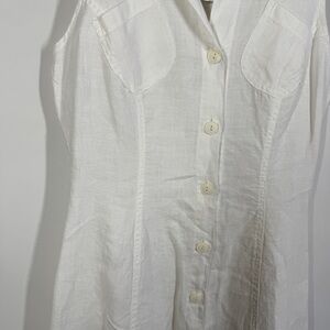Falda White Linen Button-Up Dress Size 44 Sleeveless Summer Casual