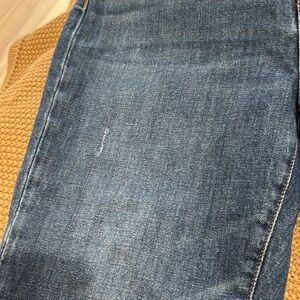 Stylish and comfortable blue jeans perfect for any occasion. These jeans offer a flattering fit and versatile style. Size 27. Waist measures 14 1/2 inches across laying flat. Rise is 11 inches. Inseam is 25 1/2 inches. Slightly different version than the stock photos because there is an intentional distress mark on each leg.