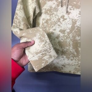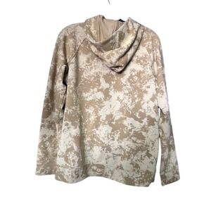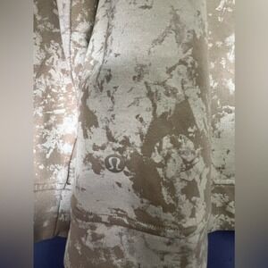 Keywords: Lululemon hoodie, pullover, tie dye, tan beige, raglan sleeve, drawstring hood, kangaroo pocket, mens casual, loungewear, athleisure, travel wear, comfort fit