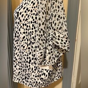 NWT Chic blouse with bold dot pattern. Features sheer short cuffed sleeves with bow feature. Perfect for versatile styling. SEE PHOTOS FOR APPROXIMATE MEASUREMENTS.