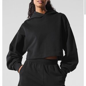 Chic black cropped hoodie. Ideal for layering and casual wear. Never worn and washed.