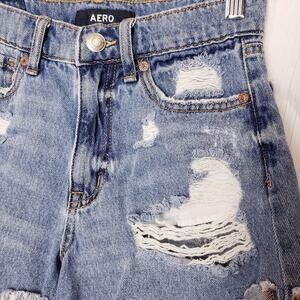 Aero Mom Short Denim High Rise Distressed Shorts Blue Size 0